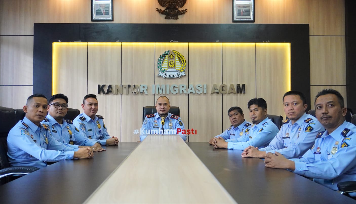 RAPAT – Kepala Imigrasi Non TPI Agam, Qris Pratama bersama para staf mengelar rapat di Kantor Imigrasi Agam. IST.