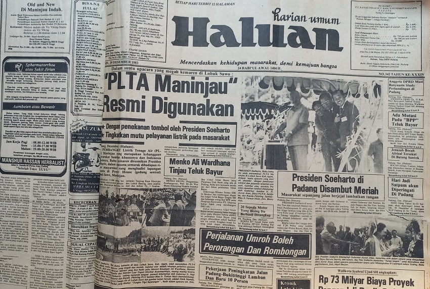 Berita ini sudah terbit di Koran Harian Umum Haluan Edisi Jumat, 29 Desember 1983 di Headline Halaman 1 dengan Judul “PLTA Maninjau Resmi Digunakan”. Kemudian ditulis ulang dengan bahasa yang sama oleh calon penulis berbakat, Amanda Athafunnisa R (Siswi SMPN 8 Padang).