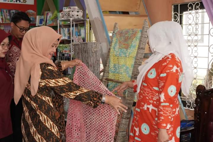 Melihat langsung kediaman Eli Fahmi, Dirjen Pemberdayaan Sosial yang diwakili Penyuluh Sosial Ahli Muda, Pujiarini bersama tim langsung terkagum dengan hasil karya yang dibuat Eli dan anak-anak didiknya.