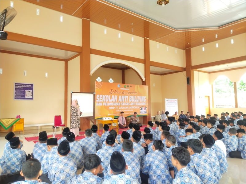 HARIANHALUAN.ID – SMP IT Cahaya Makkah, Kabupaten Pasaman Barat (Pasbar), mendeklarasikan diri sebagai sekolah anti bullying dan peluncuran satgas anti bullying, Jumat (13/1/2023).