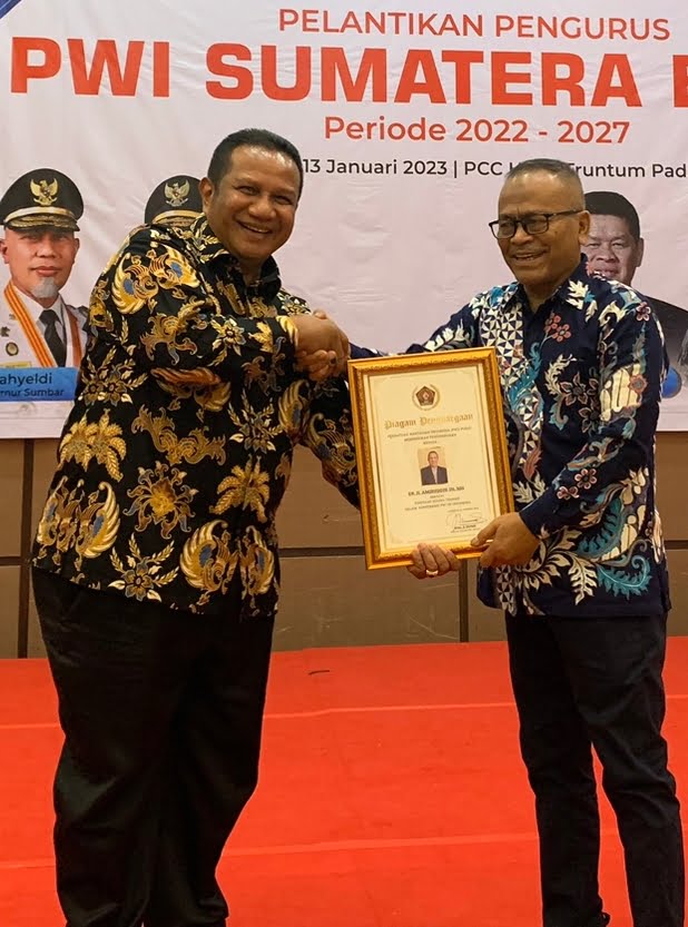 HARIANHALUAN.ID – Dr. H. Amiruddin, SH, MH, mendapat kejutan nan istimewa pada Pelantikan Pengurus PWI Sumbar periode 2022-2027 di Hotel Truntum, Padang, Jumat (13/1/2023).