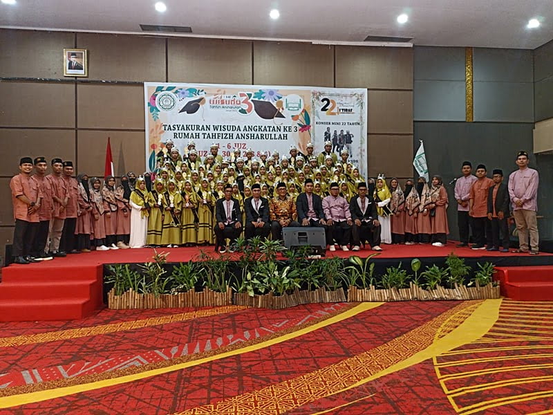 HARIANHALUAN.ID – Rumah Tahfiz Ansharullah yang berada di Jalan Rawang Timur VI No. 47, Kelurahan Rawang, Kecamatan Padang Selatan, Kota Padang, menggelar tasyakuran wisuda angkatan ke-3 di Hotel Truntum Padang, Minggu (15/1/2023).