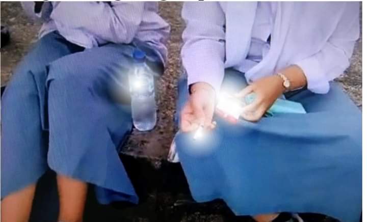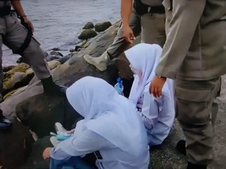 Kedua siswi ini, sedang asik nongkrong di bibir pantai menikmati indahnya deburan ombak. Diduga mereka bolos belajar, karena saat ditertibkan, proses belajar sedang berlangsung di sekolah.