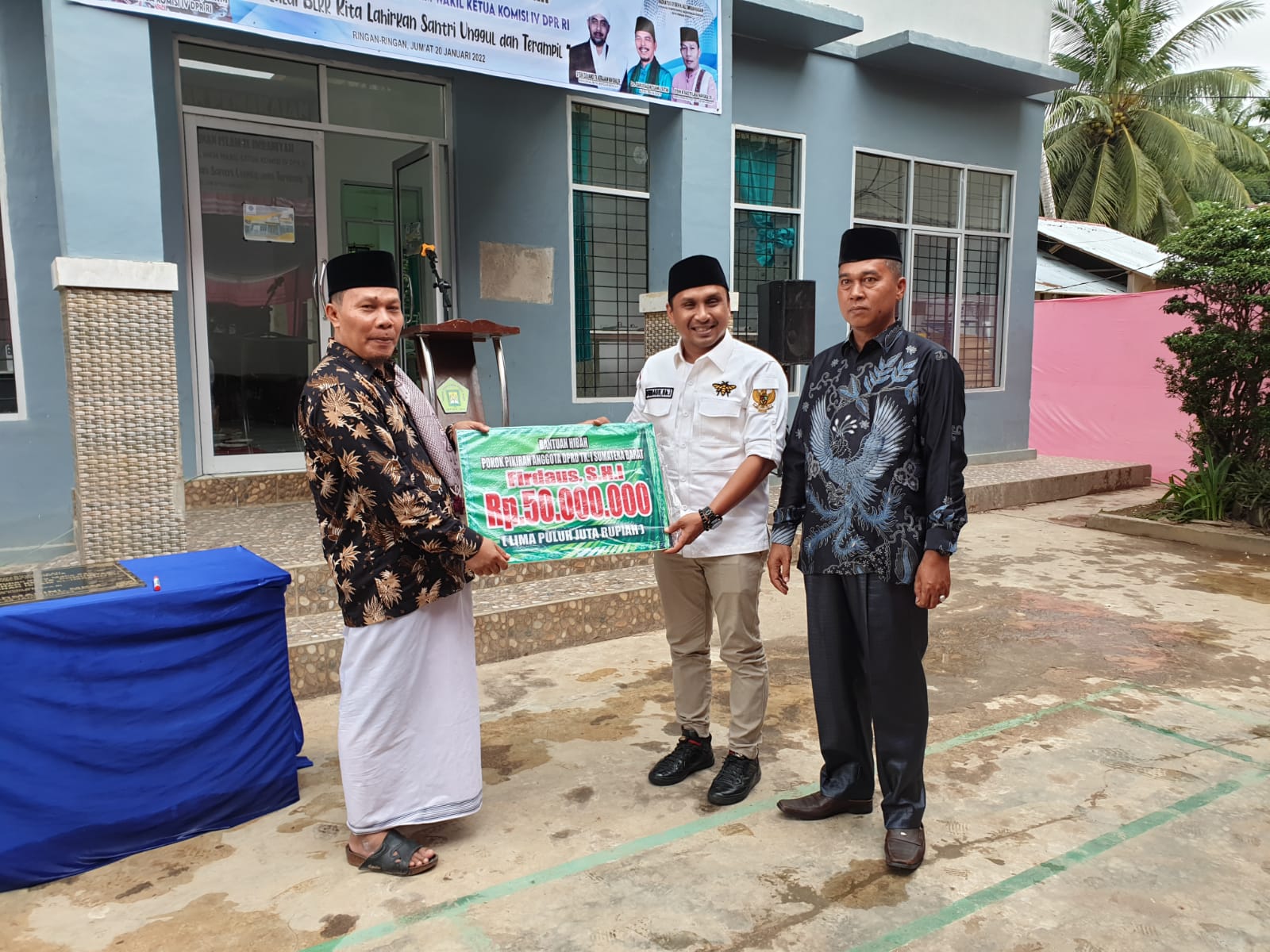 Penyerahan bantuan dari pokok fikiran (pokir) senilai Rp50 juta masing-masing pondok pesantren (ponpes) ini, diberikan secara simbolis kepada masing-masing pimpinan pondok saat peresmian Balai Latihan Kerja (BLK) Komunitas oleh Wakil Ketua Komisi IV DPR RI, Anggia Erma Rini di Pondok Pesantren Nurul Yakin Ringam-Ringan, Padang Pariaman pada Jumat (20/1/2023).