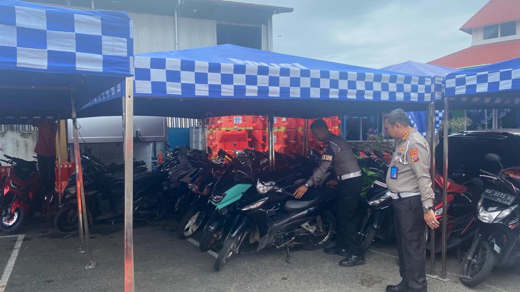 HARIANHALUAN.ID – Selama Januari 2023, Direktorat Lalu Lintas Kepolisian Daerah Sumatra Barat (Ditlantas Polda Sumbar) mengandangkan 360 unit sepeda motor. Kendaraan roda dua berbagai merek tersebut dilakukan penindakan tilang manual, karena kedapatan tidak menggunakan pelat nomor kendaraan.