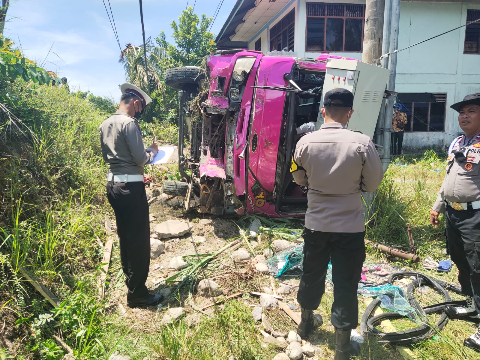 “Untuk jumlah korban, kami masih melakukan pendataan. Namun untuk penyebab kecelakaan, dugaan sementara kendaraan hilangan kendali sesampainya di Tempat Kejadian Perkara (TKP), kemudian terguling ke jurang sedalam lebih kurang dua meter,” katanya.