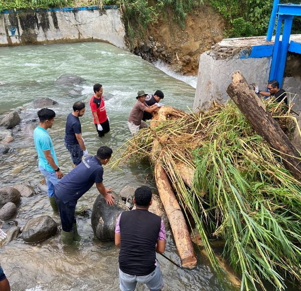 “Jadi, karena banjir itu membawa material lumpur hingga kayu-kayu, sehingga menyebabkan pipa intek tempat masuk air jadi tersumbat,” ujarnya, Selasa (24/1/2023).