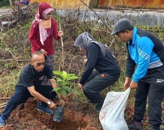 Manfaatkan Lahan Kosong dan Cegah Tanah Amblas, Camat dan Pegawai Kecamatan Barangin Tanam Pohon