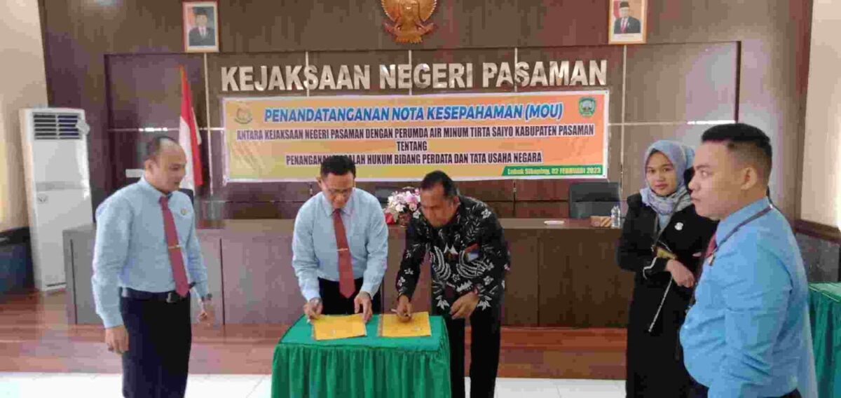 Hal itu dituangkan melalui MoU yang ditandatangani di Aula Kejari Pasaman, Kamis (2/2).MoU tersebut terkait kerja sama di bidang hukum perdata dan tata usaha negara.