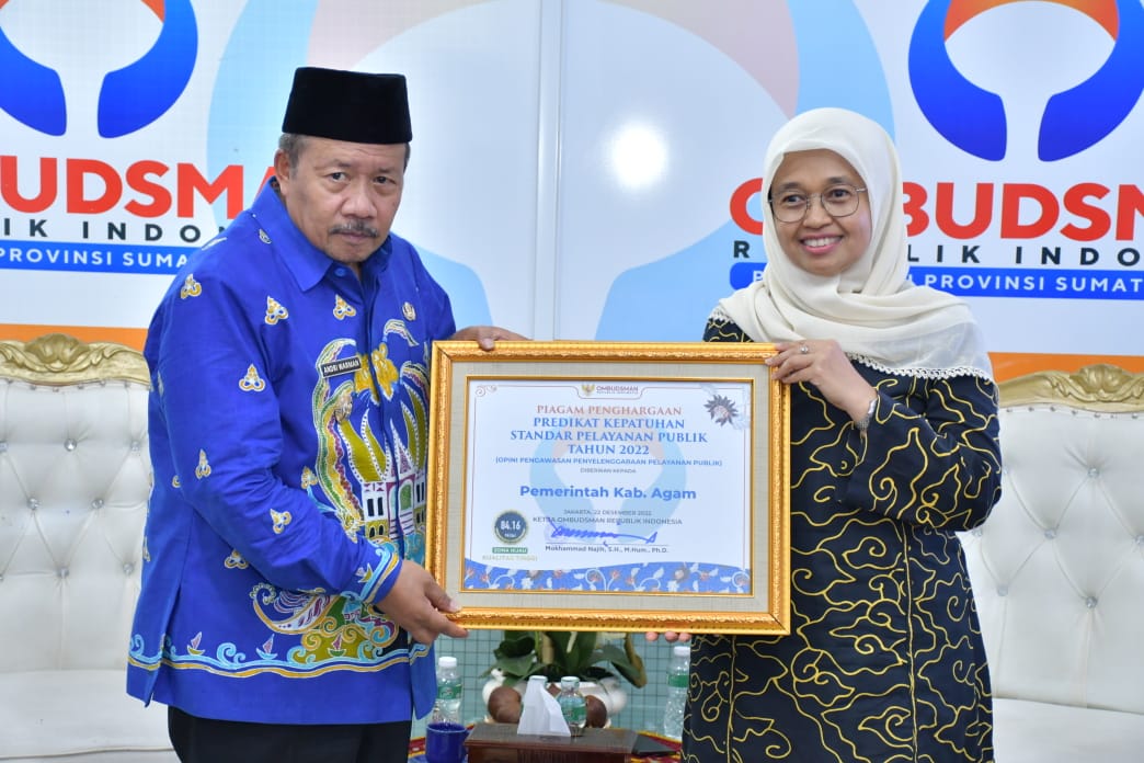 Bupati Agam Terima Penghargaan dari Ombudsman Perwakilan Sumbar