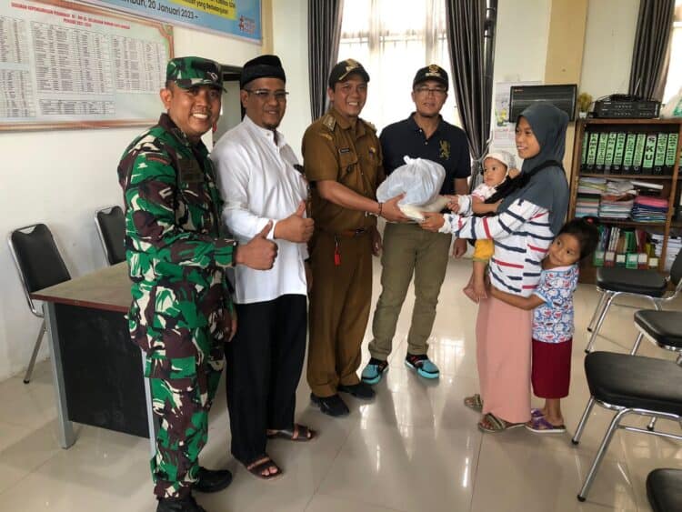 Bersama Ketua Baznas Kota Payakumbuh Hamdi Sofyan, lurah NDB Firman Hady dan Bhabinkamtibmas NDB Joko Tri, Pj. Wali Kota Payakumbuh Rida Ananda serahkan bantuan yang berisi berupa beras 5Kg, minyak goreng, kacang hijau, susu kemasan, gula dan teh.