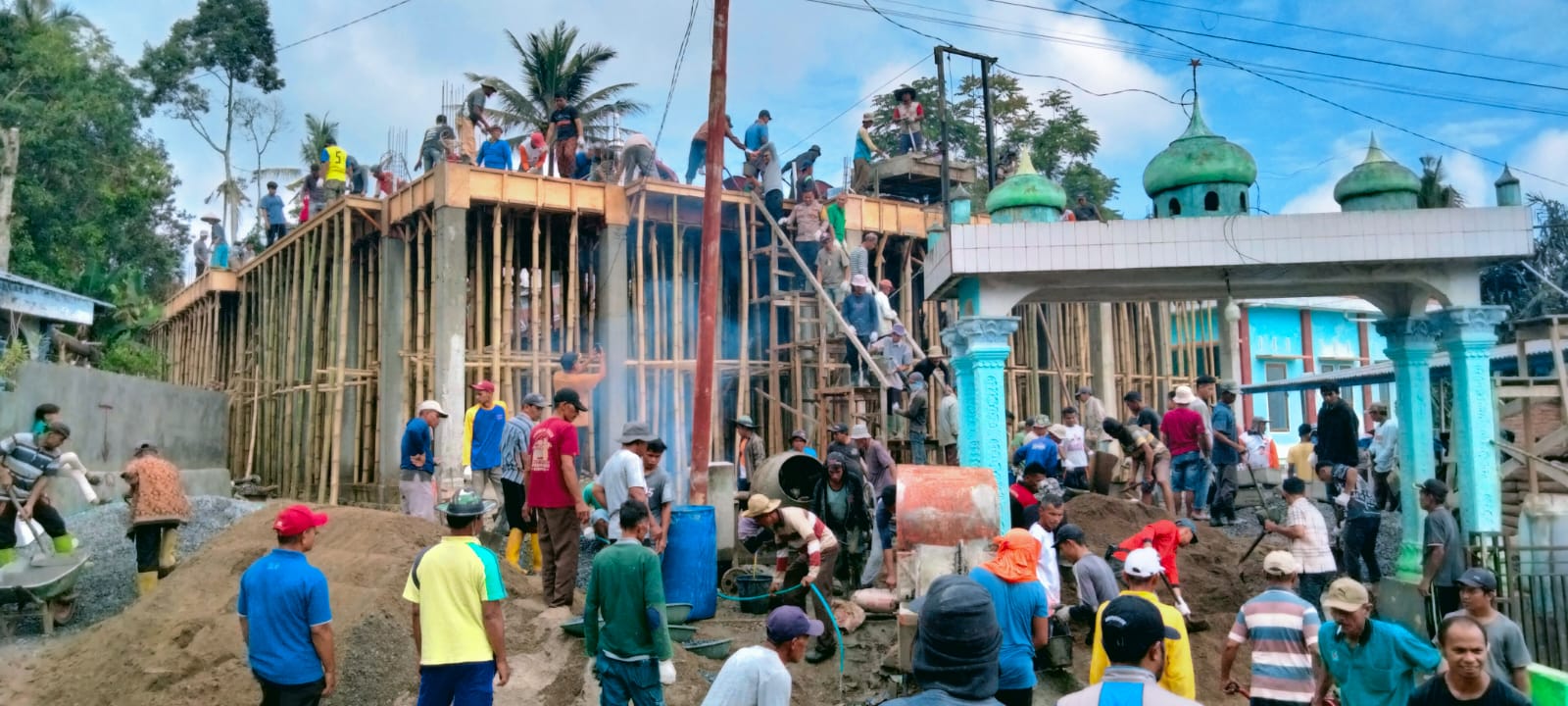 HARIANHALUAN.ID – Ratusan masyarakat mengadakan gotong royong membangun Masjid Muslimin, Jorong Kayu Tanam, Nagari Labuah Gunuang, Kecamatan Lareh Sago Halaban, Kabupaten Lima Puluh Kota, Kamis (9/2/2023).