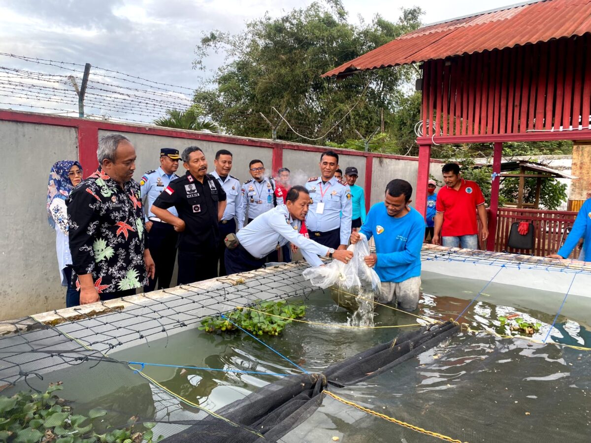 AGAM, HARIANHALUAN.ID – Direktur Bimbingan Kemasyarakatan dan Pengentasan Anak Direktorat Jenderal Pemasyarakatan Kemenkumham RI melaksanakan panen tanaman bawang merah. Sekaligus peresmian Barber Shop dan Loundry, Pelepasan Bibit Ikan, dan Penyerahan Amplifier Speaker Tanpa Listrik di lingkungan Lembaga Pemasyarakatan (Lapas) Bukittinggi, Senin (13/2).