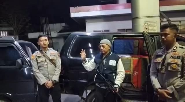 Dalam video yang beredar, terlihat Kapolda Sumbar Irjen Pol Suharyono tampak menggunakan jaket varsity, memakai peci Kupluk, serta menyandang senjata laras panjang dengan didampingi dua polisi lainnya.