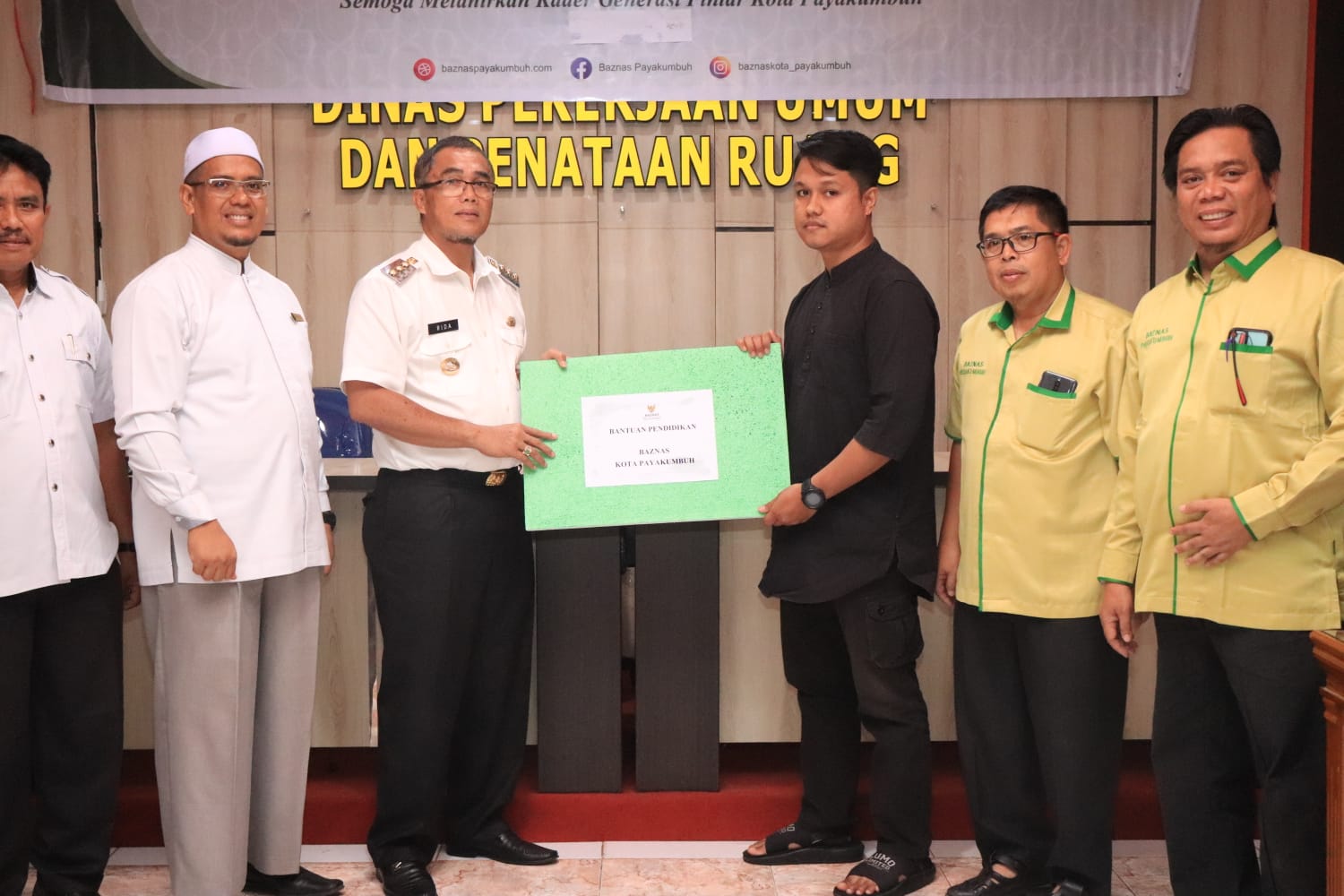 Penyerahan bantuan sebesar Rp1 juta perorang secara simbolis dilaksanakan di Aula Dinas PUPR Kota Payakumbuh yang dihadiri pengurus Baznas, kabag kesra, orang tua atau wali dan mahasiwa penerima bantuan.