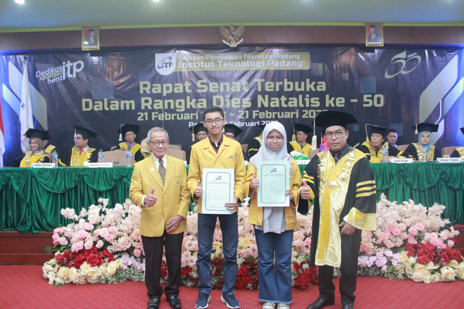 HARIANHALUAN.id – Bertepatan dengan Puncak Dies Natalis ke-50, Institut Teknologi Padang (ITP) memberikan penghargaan kepada dua orang mahasiswa berprestasi. Piagam penghargaan diserahkan langsung oleh Ketua Yayasan Pendidikan Teknologi Padang, Drs. H. Zulfa Eff Uli Ras, M.Pd dan Rektor ITP, Dr. Ir. Hendri Nofrianto, M.T., Selasa (28/02), bertempat di Aula Kampus 1 Gedung D, lt 2, Jalan Gajah Mada Kandis Nanggalo, Padang.