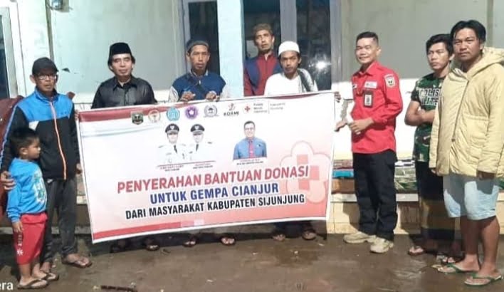 Ketua PMI Sijunjung, Zefnihan melalui Kepala Markas PMI, Rezki Fitra yang mengantar langsung bantuan tersebut mengatakan bahwa bantuan donasi berupa uang tunai sebesar Rp15 juta tersebut diserahkan langsung kepada masyarakat Balandongan RT 02 RW 06, Desa Padaluyu, Kecamatan Cugenang, Kabupaten Cianjur.
