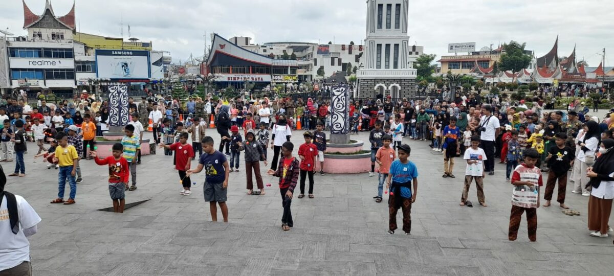 BUKITINGGI, HARIANHALUAN.ID – Sebanyak 400 an peserta ikut meramaikan festival permainan tradisional Lato Lato yang digelar Bukittinggi Pers Club (BPC) di pelataran Jam Gadang, Minggu (5/3).