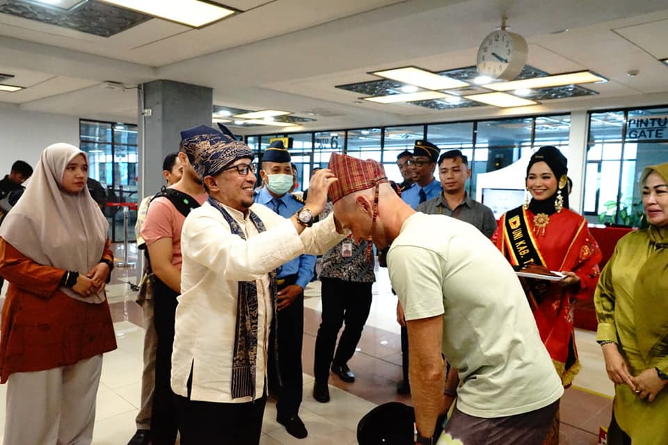 HARIANHALUAN.ID – Perdana di Sumatra Barat (Sumbar), Bupati Eka Putra mengupayakan meningkatkan kunjungan wisata ke Kabupaten Tanah Datar, dengan cara langsung terjun mempromosikan potensi wisata yang ada di daerah ini kepada penumpang pesawat Air Asia di ruang tunggu keberangkatan internasional Bandara Internasional Minangkabau (BIM), Sabtu (11/3/2023).