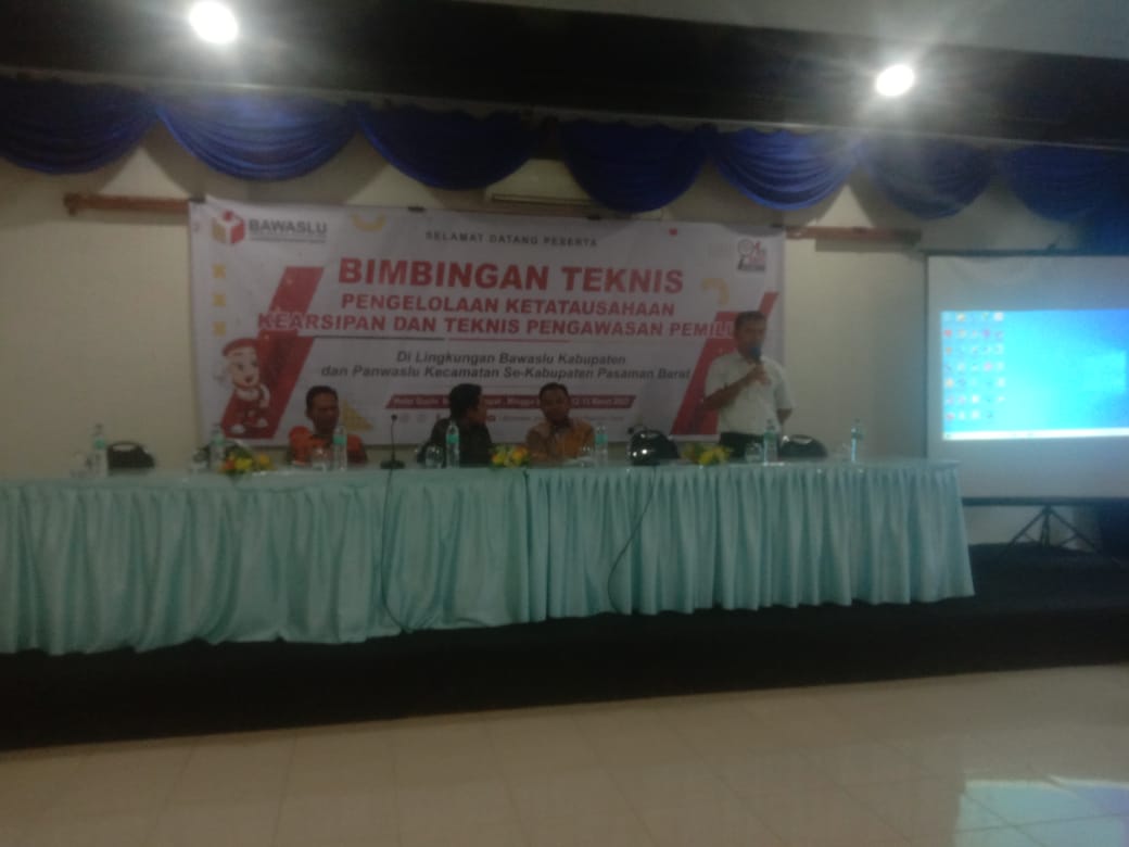 PASBAR, HARIANHALUAN.ID — Badan Pengawas Pemilu Pasaman Barat, melaksanakan bimbingan teknis pengelolaan ketatausahaan kearsipan dan teknis pengawasan Pemilu di lingkungan Bawaslu dan Panwaslu kecamatan se-Kabupaten Pasaman Barat.