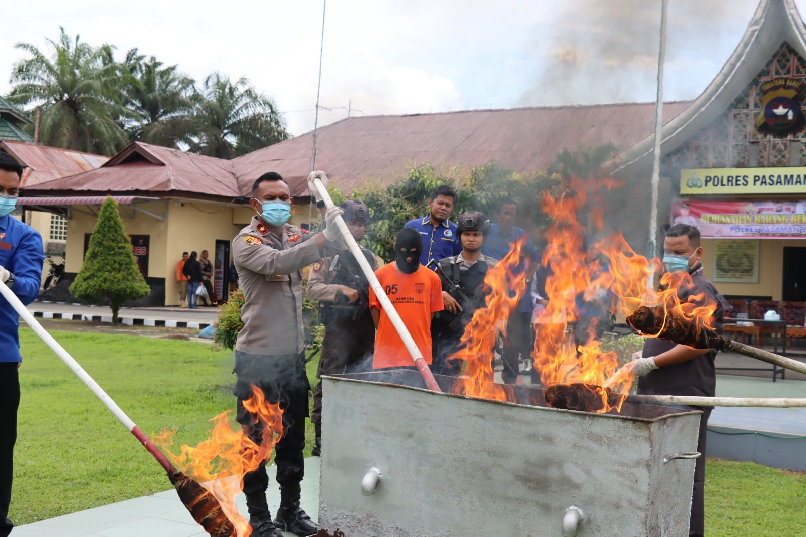 Pemusnahan itu dipimpin Wakapolres Kompol Omri Yan Sahureka didampingi Kasat Resnarkoba AKP Eri Yanto dan dihadiri Kepala Kejaksaan Negeri Pasaman Barat diwakili Jaka Saputra, Panitera Pengadilan Negeri Pasaman Barat, Warman Priatno, S, Kasubbag Umum BNNK Pasaman Barat, Gideon Gerhard Silitonga, Kasat Tahti Polres Pasaman Barat, Iptu Ralim, Kasiwas Polres Pasaman Barat, AKP Alwi, Kanit I Satresnarkoba Aipda Rosteti, penasehat hukum Fadhlil Mustafa dan tersangka MI (41).