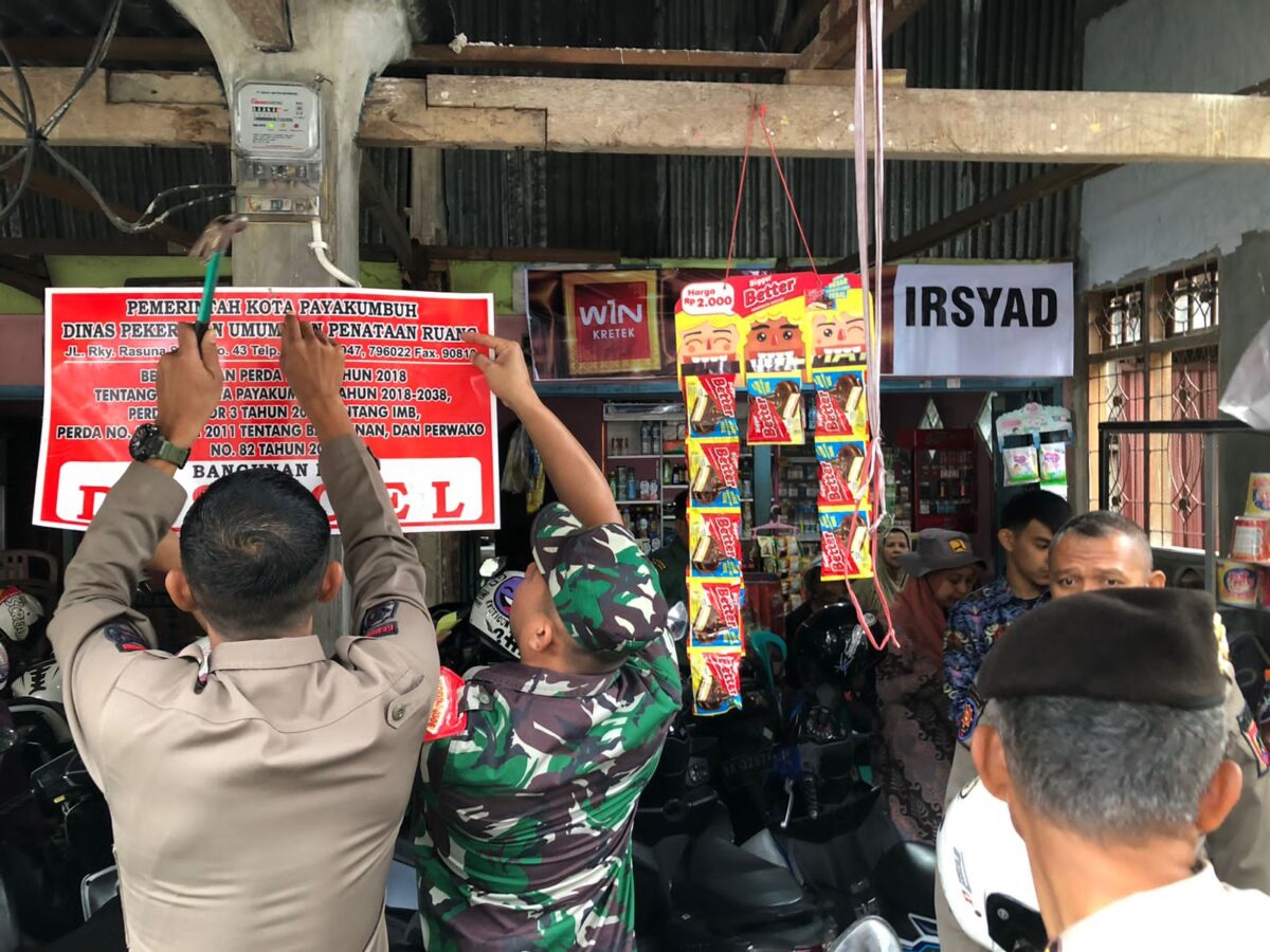 PAYAKUMBUH, HARIANHALUAN.ID — Dinas PUPR bersama tim gabungan yang terdiri dari Dinas DPMPTSP, SatPol-PP, Dinas Perkim, bagian Hukum Setdako serta dari satuan Polres dan TNI Payakumbuh laksanakan penyegelan bangunan yang melanggar peraturan perundang-undangan serta peraturan wali kota (Perwako) Nomor 82 tahun 2019 yang disegel oleh Tim Penertiban Bangunan, Dinas Pekerjaan Umum dan Penataan Ruang (PUPR) Kota Payakumbuh, Kamis (16/3) siang.