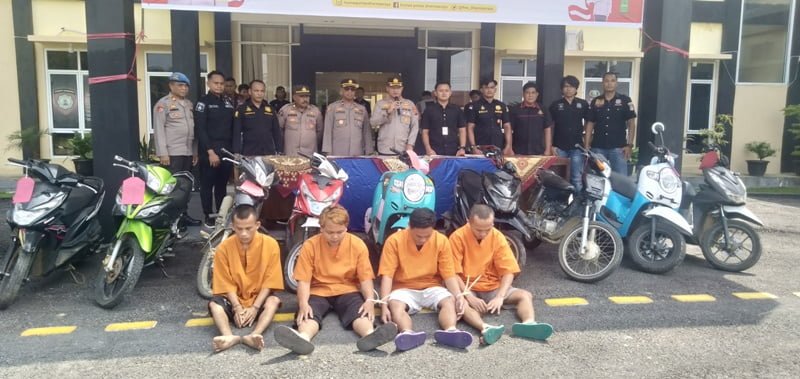 Ia mengatakan, empat tersangka yang berhasil diamankan adalah A1 (26) warga Jorong Pakan Jum’at, Nagari Abai Siat, Kecamatan Koto Besar, IRS1 (29) warga Jorong Ranah Pasar, Nagari Abai Siat, Kecamatan Koto Besar, RR (33) Jorong Seberang Piruko Timur, Kecamatan Koto Baru. Sedangkan tersangka kasus curanmor R4 1 RHF (25), warga Jalan Masjid Al Makmur, Kelurahan Pejaten Timur, Kecamatan Pasar Minggu, Jakarta Selatan.