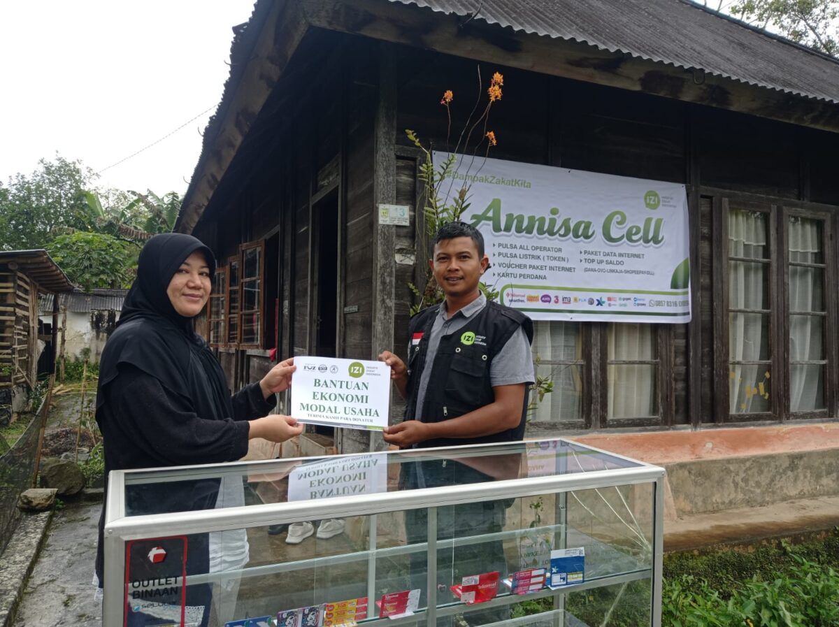 Melalui staff penyaluran zakat IZI Forina Febriany dkk, Lembaga IZI memberikan bantuan berupa modal alat usaha tani untuk pembukaan lahan pertanian cabai rawit serta modal usaha berupa etalase, voucher internet, pulsa isi ulang, spanduk, dll untuk modal usaha konter pulsa. ***