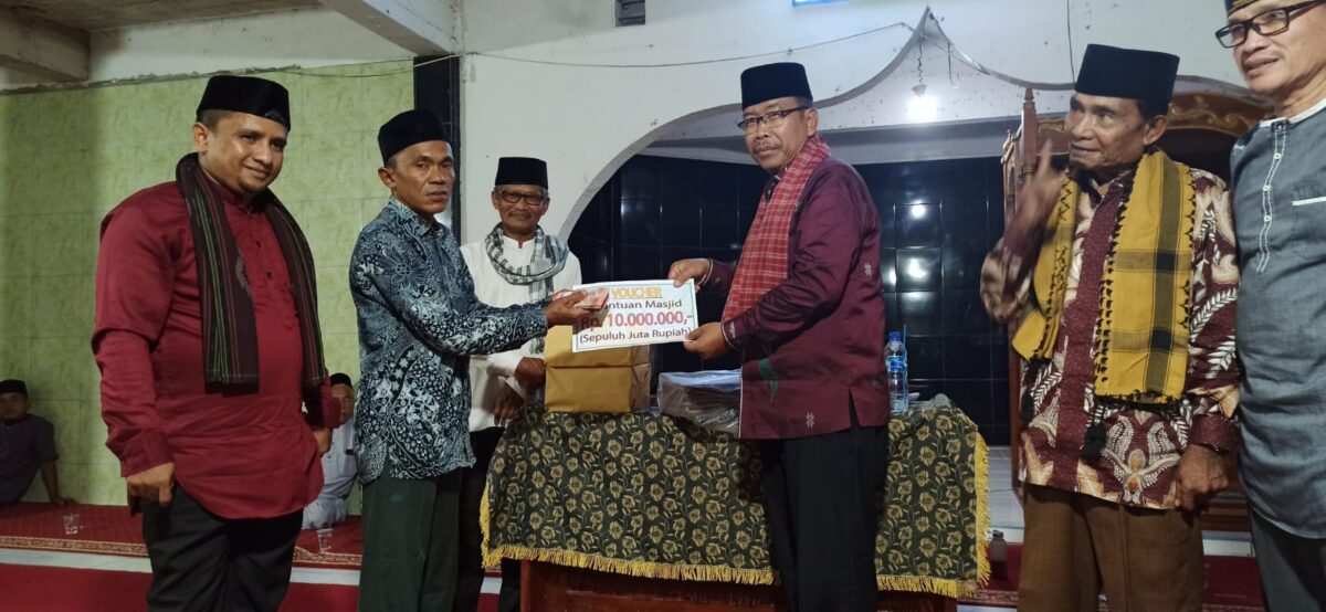 Ketua Tim XV Budi Waluyo pada kesempatan itu menyampaikan bantuan Bupati Sutan Riska berupa uang tunai Rp10 juta, satu lembar tikar salat, 10 Al-Qur’an dan tempat membaca Al-Qur’an. Diterima pengurus masjid disaksikan Wali Ngari Lubuk Karak Doni.