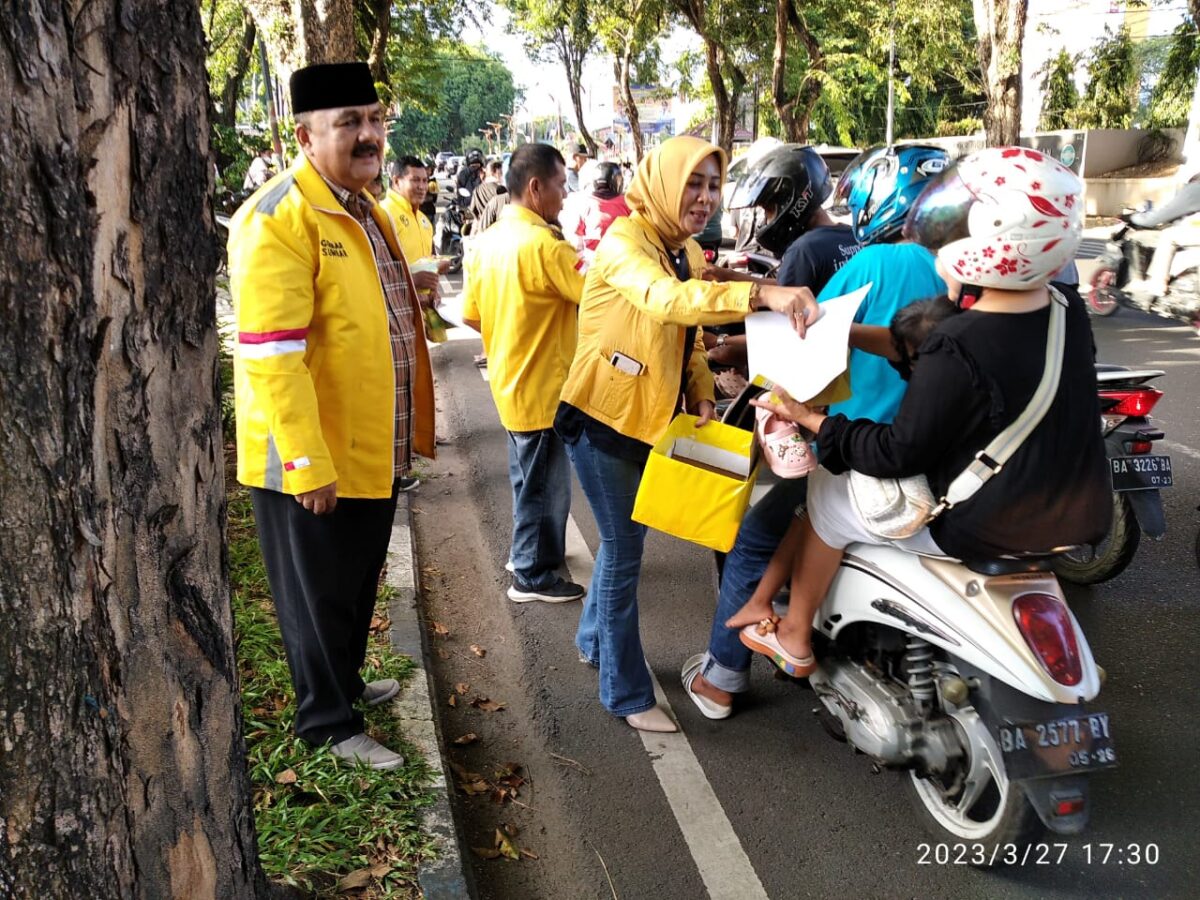 PADANG,HALUAN– Partai Golkar Sumbar berbagi 200 paket tajkil untuk berbuka puasa setiap harinya selama 20 hari bulan Ramadan mulai 27 Maret hingga 15 April 2023.