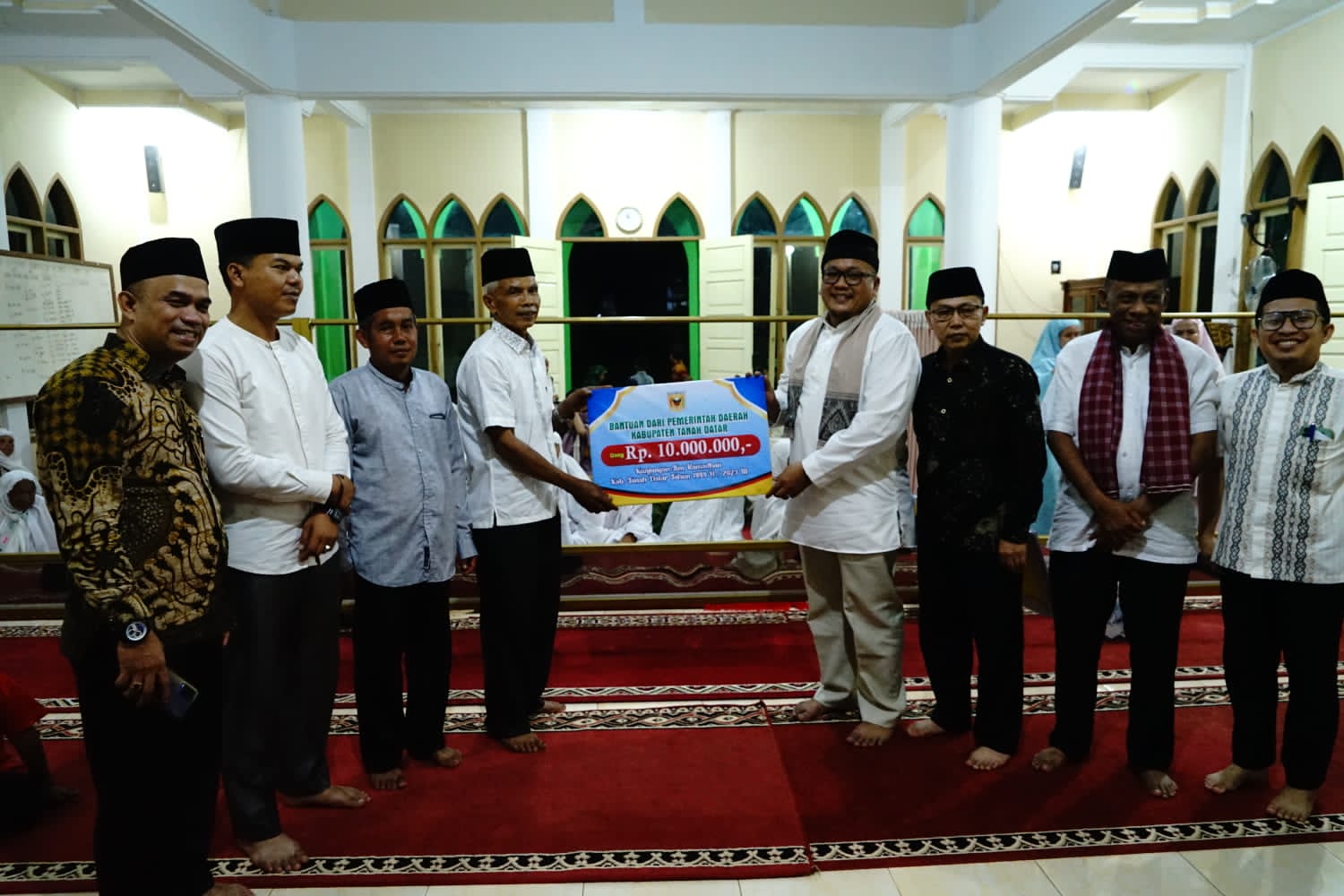 Ketua TSR III Kabupaten Tanahdatar H.Roni Mulyadi Dt.Bungsu,SE. menyerahkan bantuan Rp10 juta untuk Masjid Asy Syafaat,Jorong Padanglaweh ,Nagari Tanjungbonai, Kecamatan Lintaubuo Utara, Rabu (29/3). EMRIZAL
