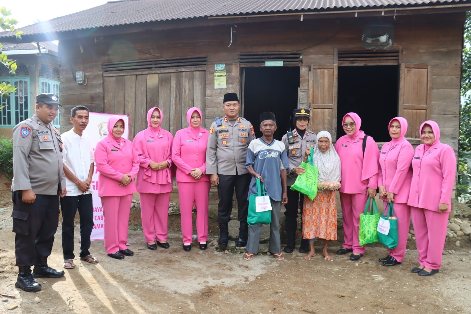 Pada kesempatan tersebut dipimipin langsung Kapolres Pasaman Barat, AKBP Agung Basuki didampingi Ketua Bhayangkari Cabang Pasaman Barat, Mutya Agung, Kapolsek Pasaman, AKP Rosminarti, Bhabinkamtibmas Nagari Aur Kuning, Aipda Riki Hendrianto, serta para pengurus cabang Bhayangkari Pasaman Barat.