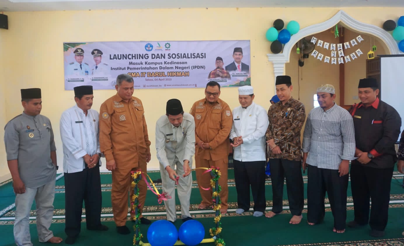 Wakil Bupati Pasbar Risnawanto memotong pita sebagai tanda diluncurkan kerja sama Darul Hikmah dengan IPDN sekaligus sosialisasi untuk masuk Kampus Kedinasan IPDN, Selasa (4/4).