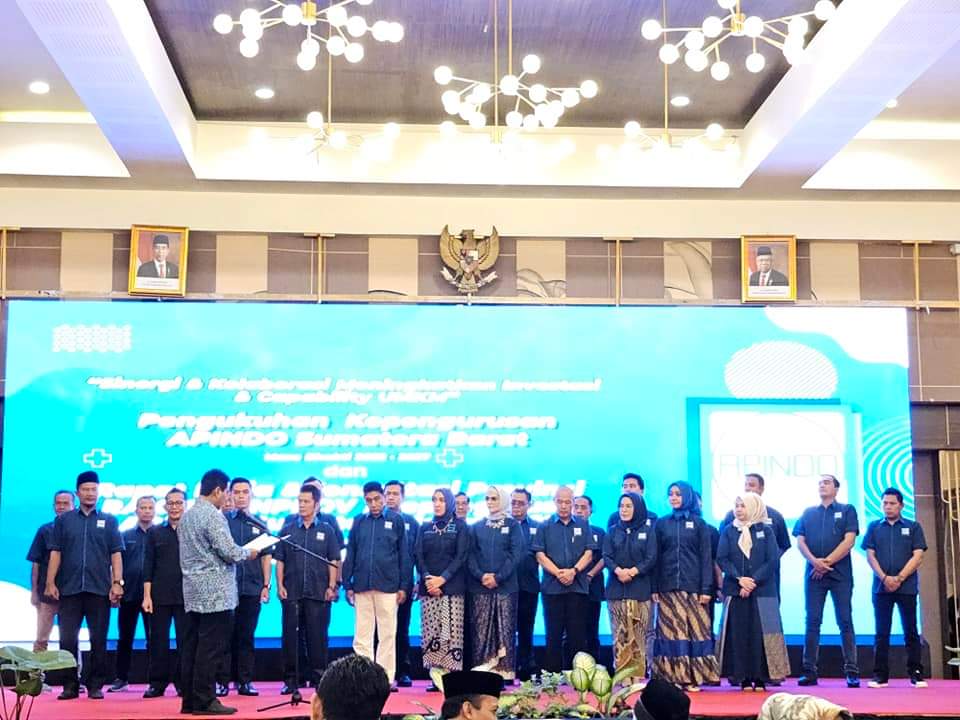 Dihadiri Gubernur Sumbar, Mahyeldi Ansharullah, Ketua Apindo Pusat Hariyadi B. Sukamdani mengukuhkan A E Rina Pangeran bersama Sekretarisnya Yusni Elma dan 27 pengurus lainnya.
