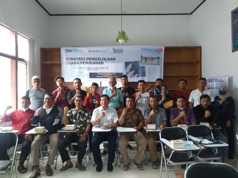 HALUANNEWS, SAWAHLUNTO — PT. Bukit Asam Ombilin mengadakan pelatihan strategi usaha untuk para pembudidaya bidang perikanan di Rumah BUMN Sawahlunto, Kamis (31/3/2022). Kegiatan ini digelar untuk mendukung pengembangan perikanan di Kota Sawahlunto.