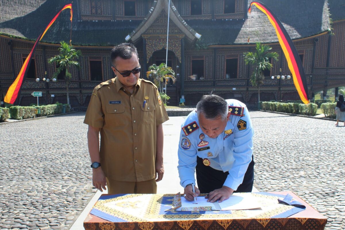 Kantor Imigrasi Non TPI Agam, menandatangani kerja sama dengan Dinas Pariwisata Pemuda dan Olahraga Kabupaten Tanah Datar di Istana Basa Pagaruyuang, Senin (10/4). IST.