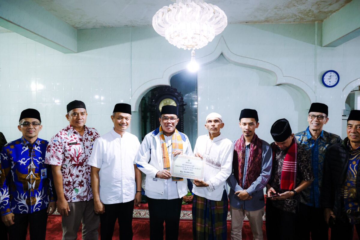 Dalam safari Ramadan tersebut, Supardi menyerahkan bantuan dari Pemprov Sumbar sebesar Rp50 juta dan juga Bank Nagari sebesar Rp10 juta untuk Masjid Raya Baruah Gunung.