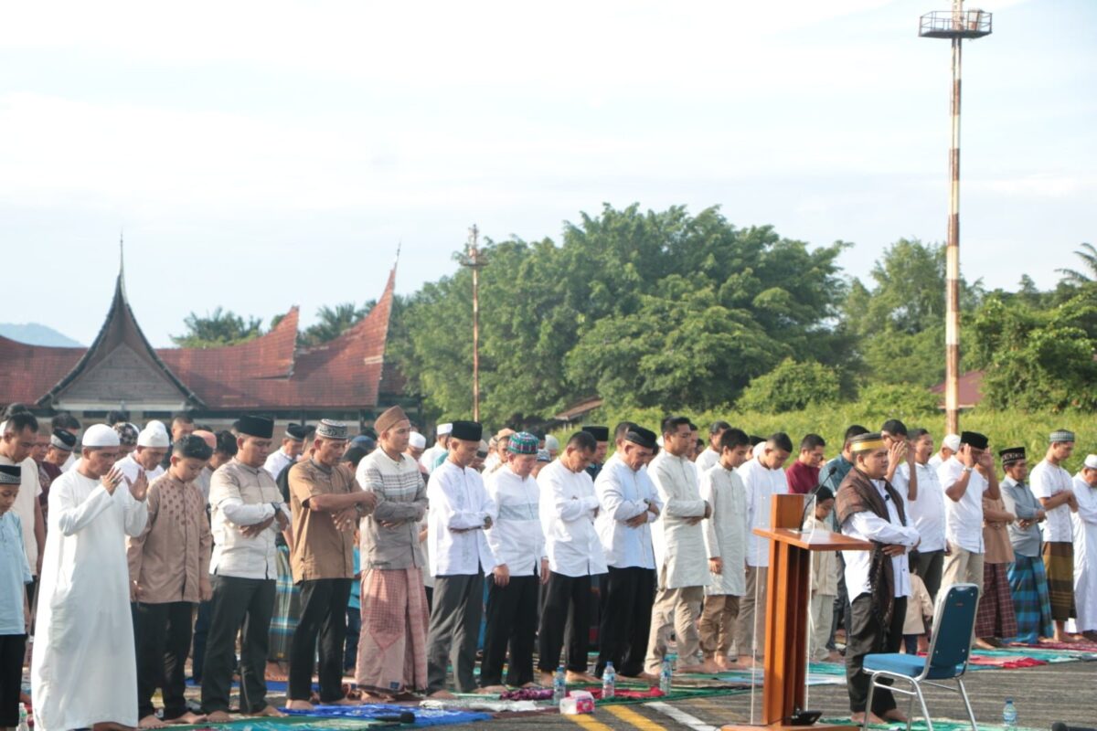 PADANG, HARIANHALUAN.ID – Komandan Lanud Kolonel Nav Saeful beserta Ketua PIA Ardhya Garini Cabang 14/D I Lanud Sutan Sjahrir Cicik Saeful Rakhmat melaksanakan salat Idul Fitri 1444 H bersama keluarga besar Lanud Sut dan masyarakat sekitar yang di gelar di Apron Lanud Sut, Padang, Sabtu, (22/4)