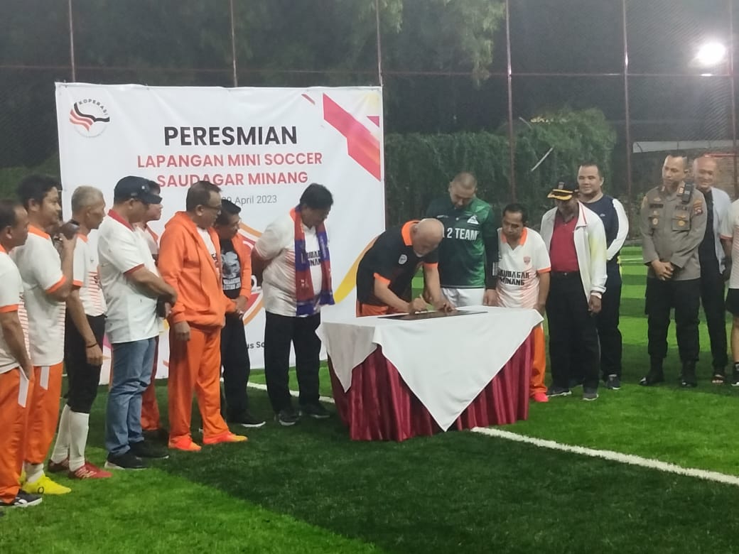 PADANG, HARIANHALUAN.ID — Lapangan mini soccer yang representatif kini hadir di Kota Padang, tepatnya di Komplek GOR H Agus Salim. Pada Sabtu (29/4) malam, lapangan  yang merupakan investasi dari Koperasi  Saudagar Minang Raya (KMSR) itu, diresmikan pemakaiannya oleh Gubernur Sumbar Mahyeldi Ansharullah.