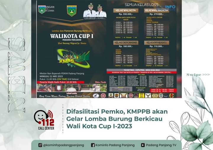HARIANHALUAN.ID – Difasilitasi Pemerintah Kota melalui Dinas Pemuda, Olahraga dan Pariwisata (Disporapar), komunitas Kicau Mania Padang Panjang Bersatu (KMPPB) akan menggelar Lomba Burung Berkicau Wali Kota Cup I-2023 pada 21 Mei mendatang.