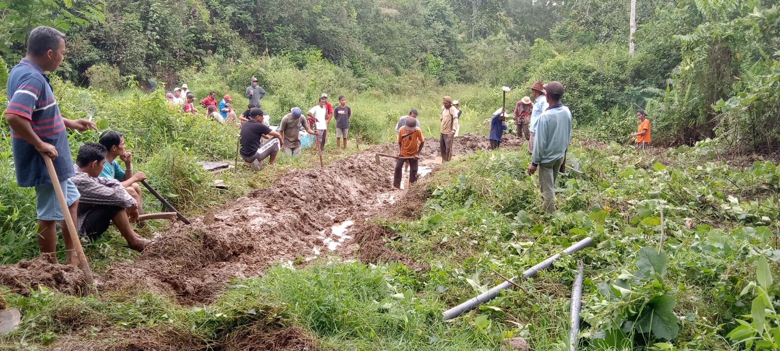 “Karena ketersedian air baku pada sumber air tidak mencukupi, maka dari hasil musyawarah tersebut disepakati untuk melakukan gotong royong mencari sumber air untuk dialirkan ke waduk penampung untuk seterusnya dialirkan ke bak induk,” katanya.