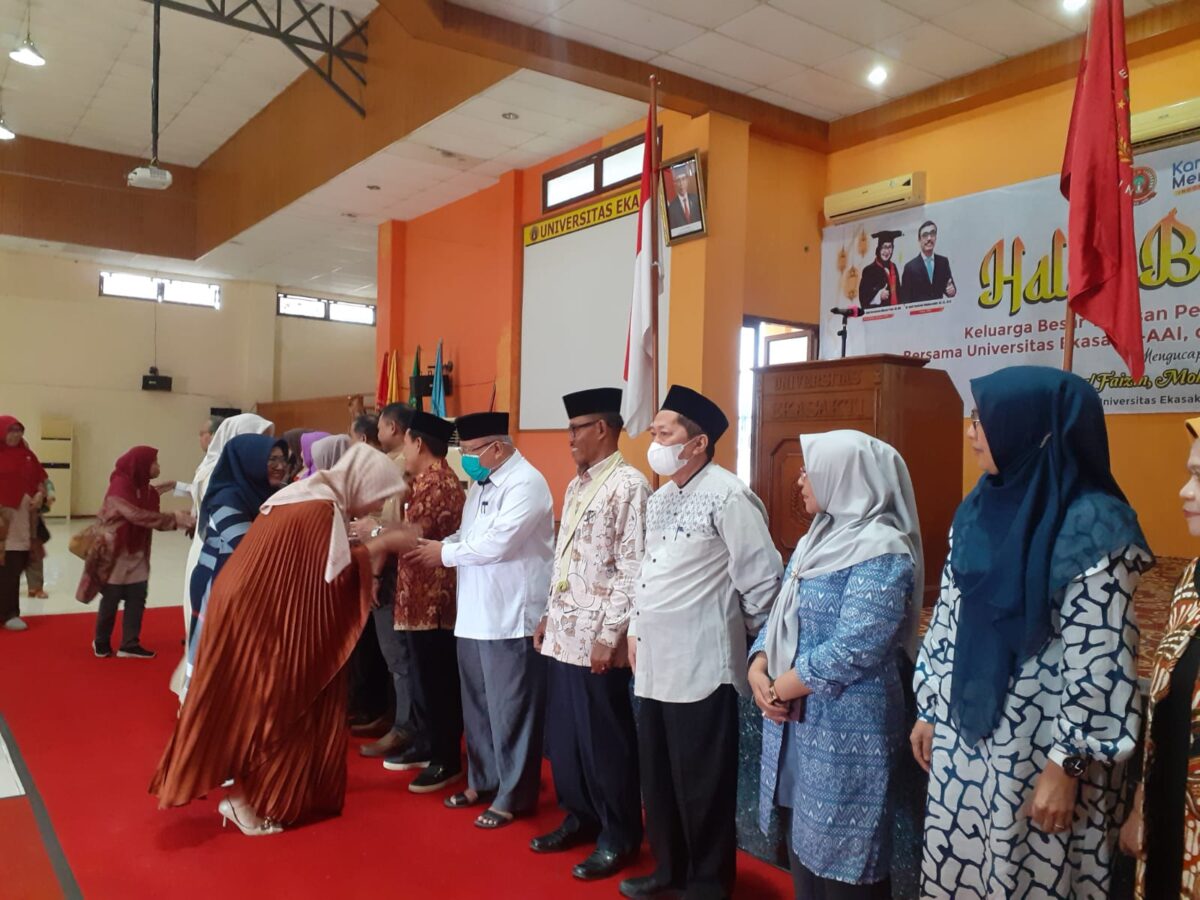Halalbihalal ini menghadirkan penceramah Dasman Agus, S.Iq, S.Ag dan dihadiri 415 orang terdiri dari pimpinan, dosen dan kepala biro dan unit serta pegawai di lingkungan Universitas Ekasakti, Akademi Akuntransi Indonesia, SMA Ekasakti dan TK Ekasakti.