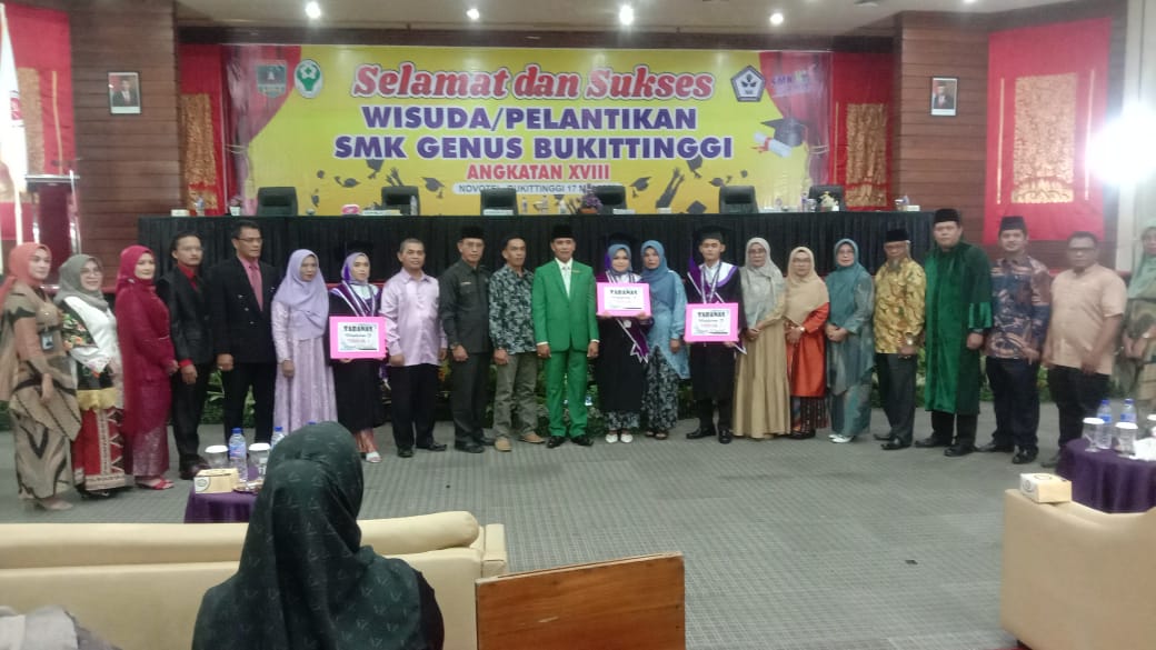 “Saya mengucapkan terima kasih kepada orang tua wisudawan atas kepercayaan telah menitipkan anaknya di Kota Bukittinggi yaitu di SMK Genus untuk menimba ilmu selama 3 tahun. Ini merupakan tempat yg tepat, pas dan hebat. Tidak semua orang bisa masuk dan diterima di SMK Genus,” jelasnya.