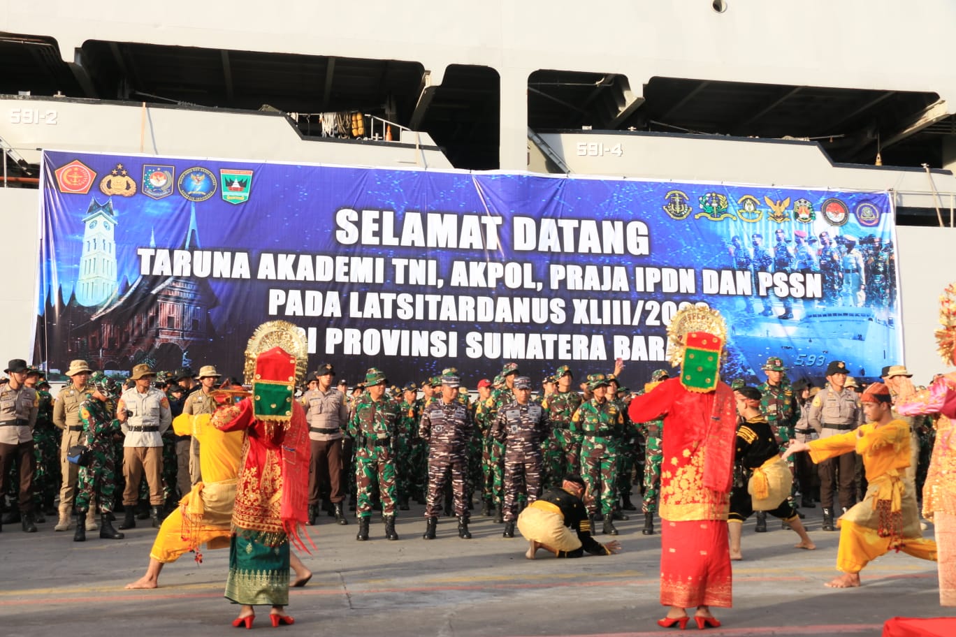 Peserta Latsitarda Nusantara telah datang pada Rabu (17/5/2023), dengan menggunakan kapal milik TNI AL. Kedatangannya disambut Wagub Sumbar, Audy Joinaldi, Danjen Akademi, Wakalemdiklat Polri, Kapolda Sumbar dan Forkopimda Sumbar.