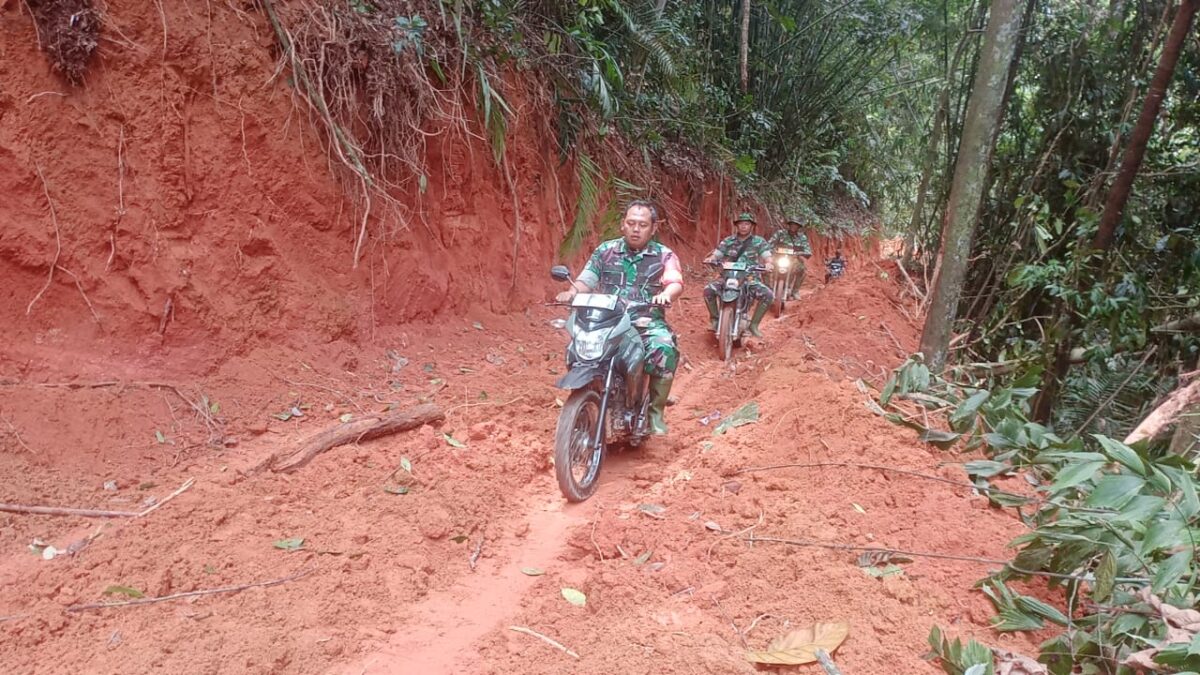 Terlihat di lapangan, Dansatgas didampingi oleh Koordinator Lapangan Kapten Inf Kusmianto bersemangat tanpa menghiraukan kondisi jalan yang berlumpur.