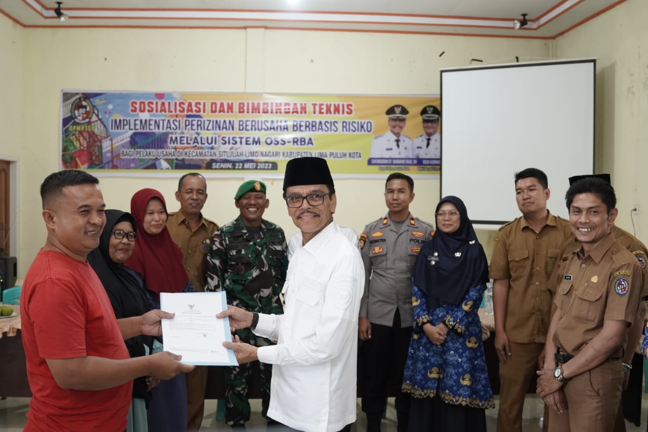 Hal itu jadi salah satu tujuan digelarnya kegiatan sosialisasi dan bimbingan teknis implementasi perizinan berusaha berbasis resiko bagi pelaku usaha di Aula Serbaguna Nagari Situjuah Batua, Kecamatan Situjuah Limo Nagari yang dibuka langsung Bupati Lima Puluh Kota, Safaruddin Dt. Bandaro Rajo, Senin, (22/5).