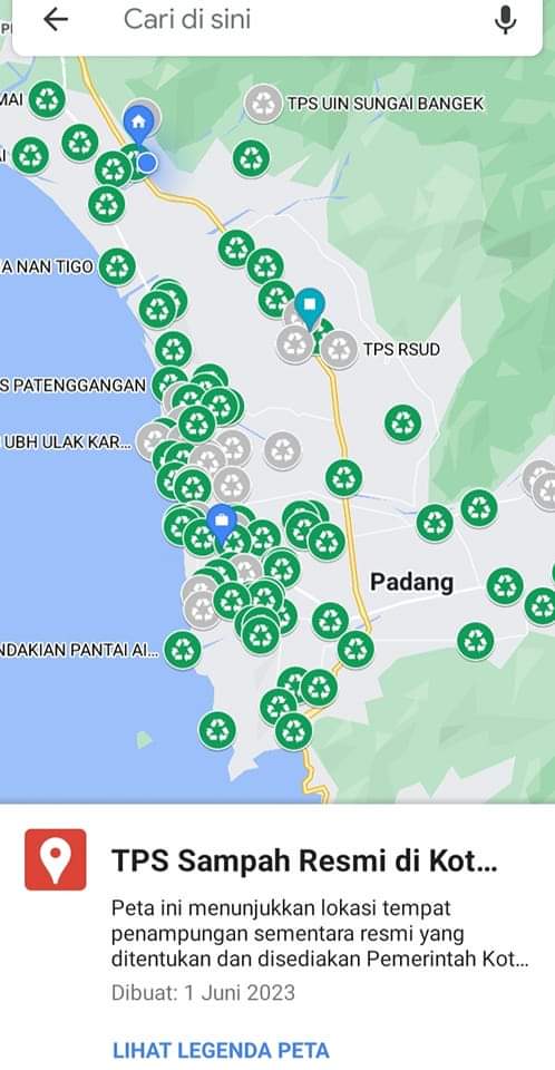 Kini, agar warga tidak kesulitan membuang sampah. Serta mengetahui letak kontainer sampah, Pemko Padang melalui Dinas Lingkungan Hidup (DLH) membuat aplikasi. Aplikasi tersebut berisi informasi terkait titik TPS di Kota Padang.