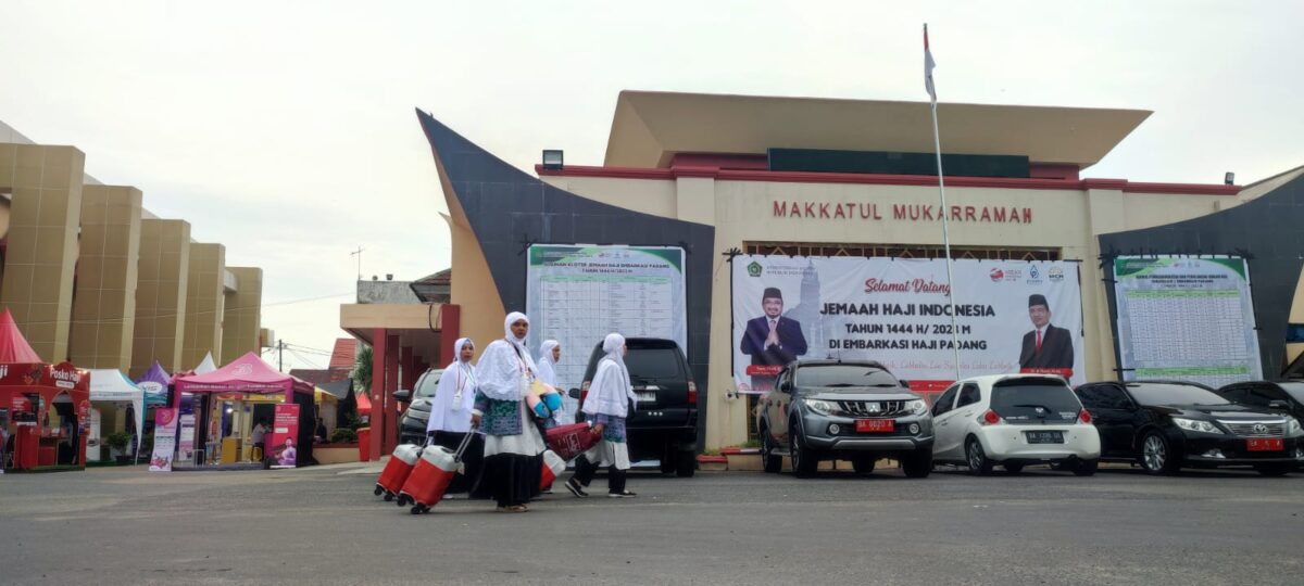 Kedatangan 393 jemaah ini disambut Kepala Kanwil Kemenag Sumbar diwakili Kepala Bidang Urais, Edison dan Kepala Bagian Tata Usaha, Miswan bersama Petugas Penyelenggaraan Ibadah Haji (PPIH) Embarkasi Padang.