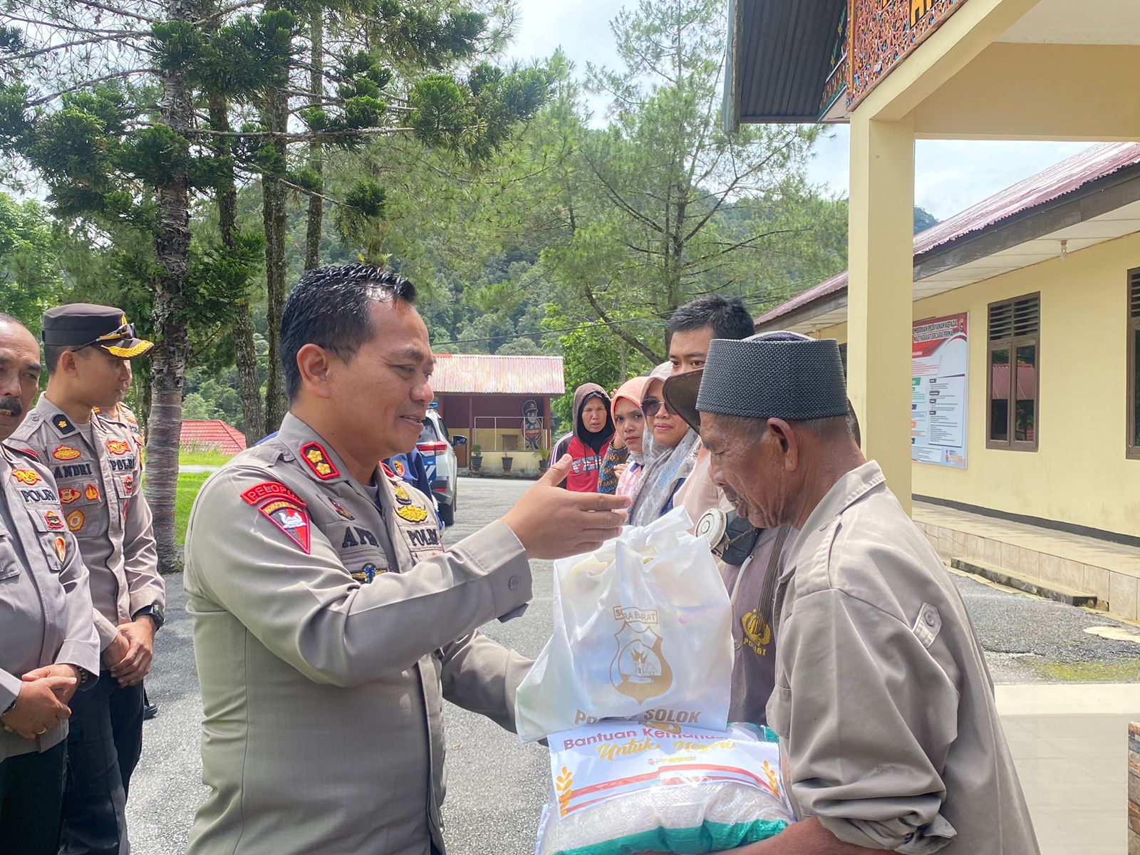HARIANHALUAN.ID – Puluhan masyarakat kurang mampu di Kabupaten Solok mendapatkan bantuan sembako dari Kapolres Solok, AKBP Apri Wibowo.