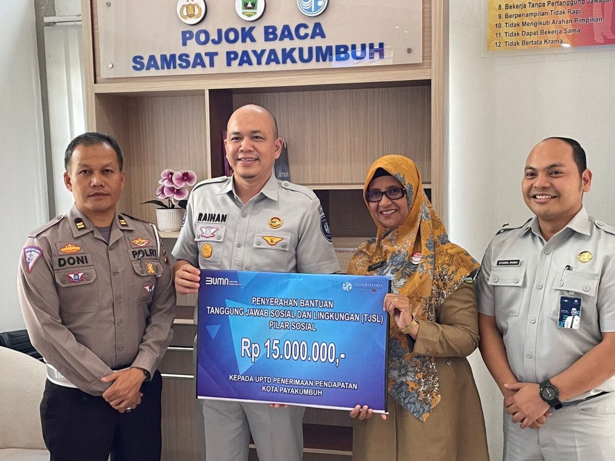 HARIANHALUAN.ID – Jasa Raharja Cabang Sumatera Barat berikan bantuan pengadaan Pojok / Ruang Baca di Samsat Payakumbuh pada Senin (12/6). Penyerahan bantuan melalui program TJSL (Tanggung Jawab Sosial dan Lingkungan) Pilar Sosial.